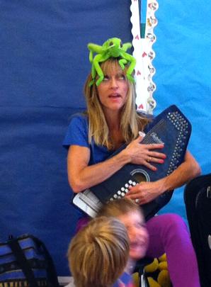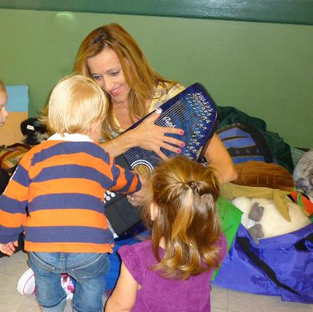 | Dawny Dew’s music class weaves pre-school learning with singing, movement and swaying to the beat! Repetition, “echo songs” and silly rhymes capture children’s attention. Funny lyrics with ironic twists engage their imaginations and extend their language arts skills, as well. Dawny Dew introduces notation, so youngsters are reading music as they beat out the rhythm on basic hand percussion instruments. Dawny Dew entices learning through fun! |